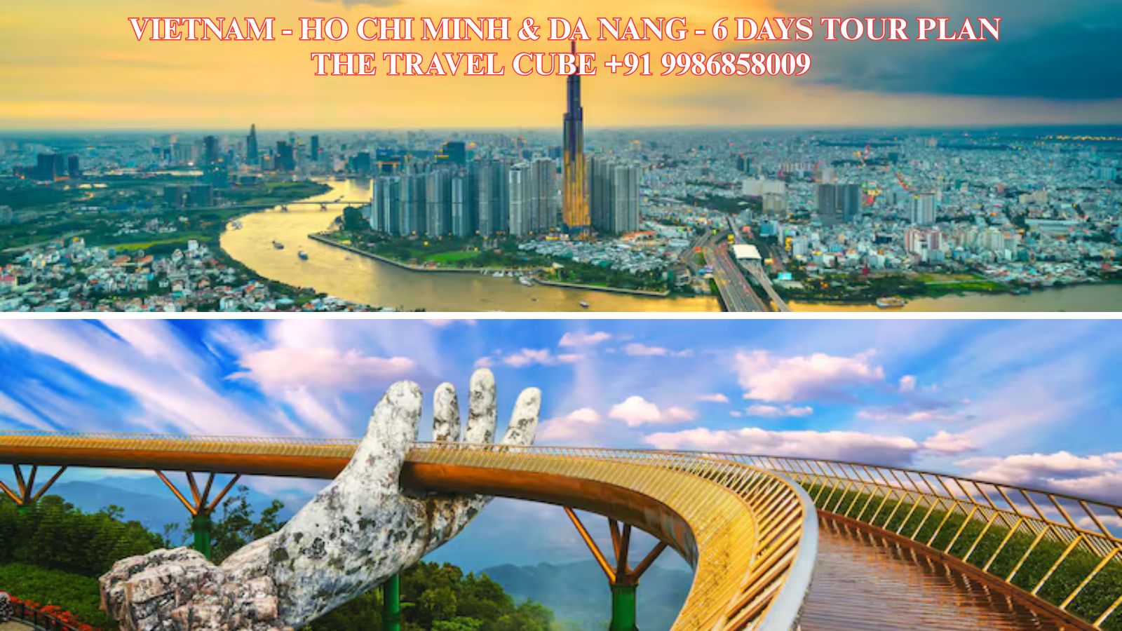 A 6-day Vietnam itinerary typically splits time between Southern history (Ho Chi Minh City, Cu Chi Tunnels) and Central charm (Da Nang, Hoi An/Ba Na Hills). The plan include visiting the Cu Chi Tunnels, exploring the Mekong Delta, walking the lantern-lit streets of Hoi An Ancient Town, and visiting the Golden Bridge at Ba Na Hills